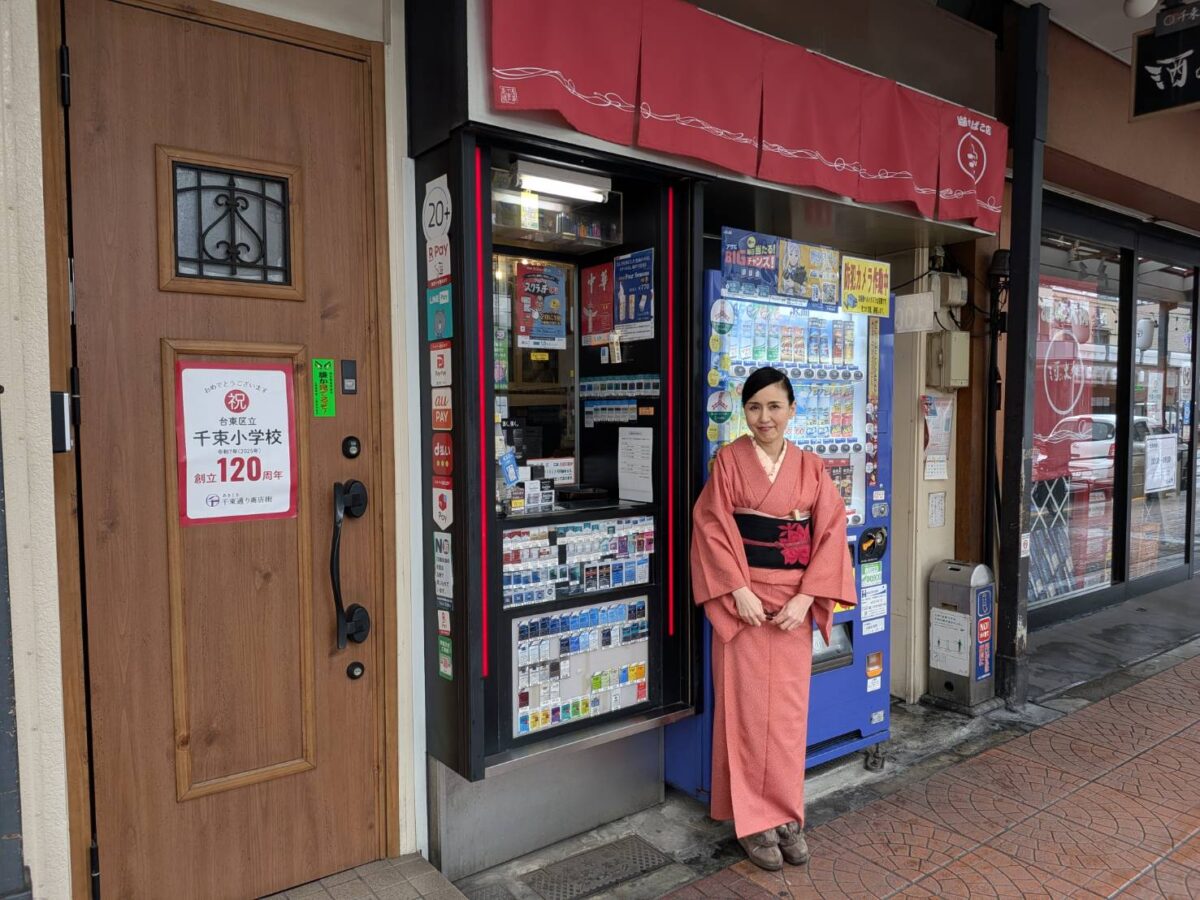 昭和レトロがテーマの千束通りで、着物で店頭に立つ近藤さんの姿は、その世界観をそのまま体現しています。千束通り商店街にお越しの際は、ぜひ気軽に声をかけてみてください。